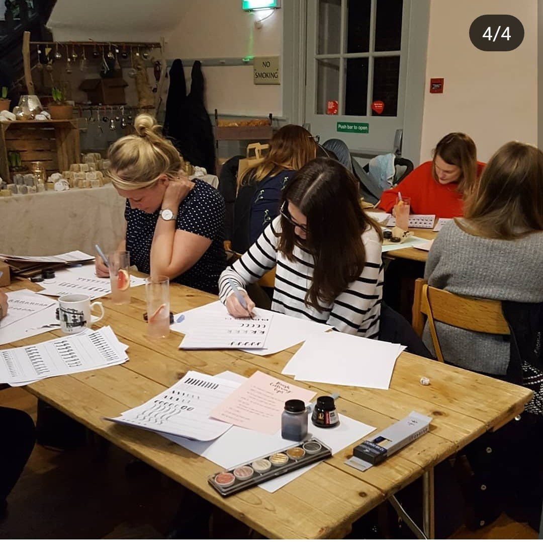 cursive to brush work lettering. We can also offer taster workshops for events.