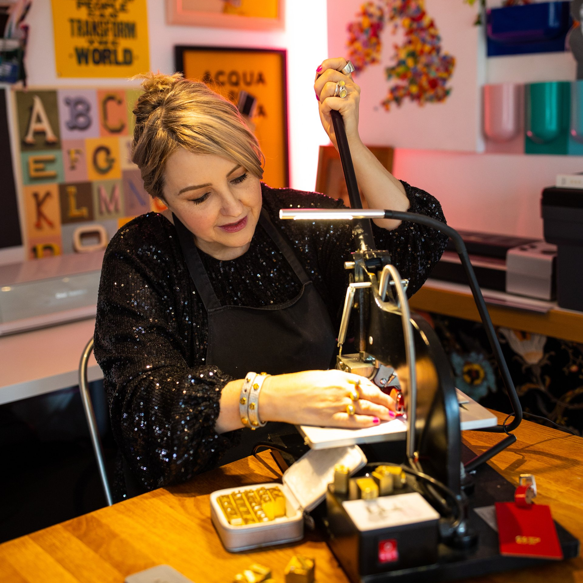 leather, fabric, paper or card. We have a small range of type in stock, we can also have type made at the correct font & size required.